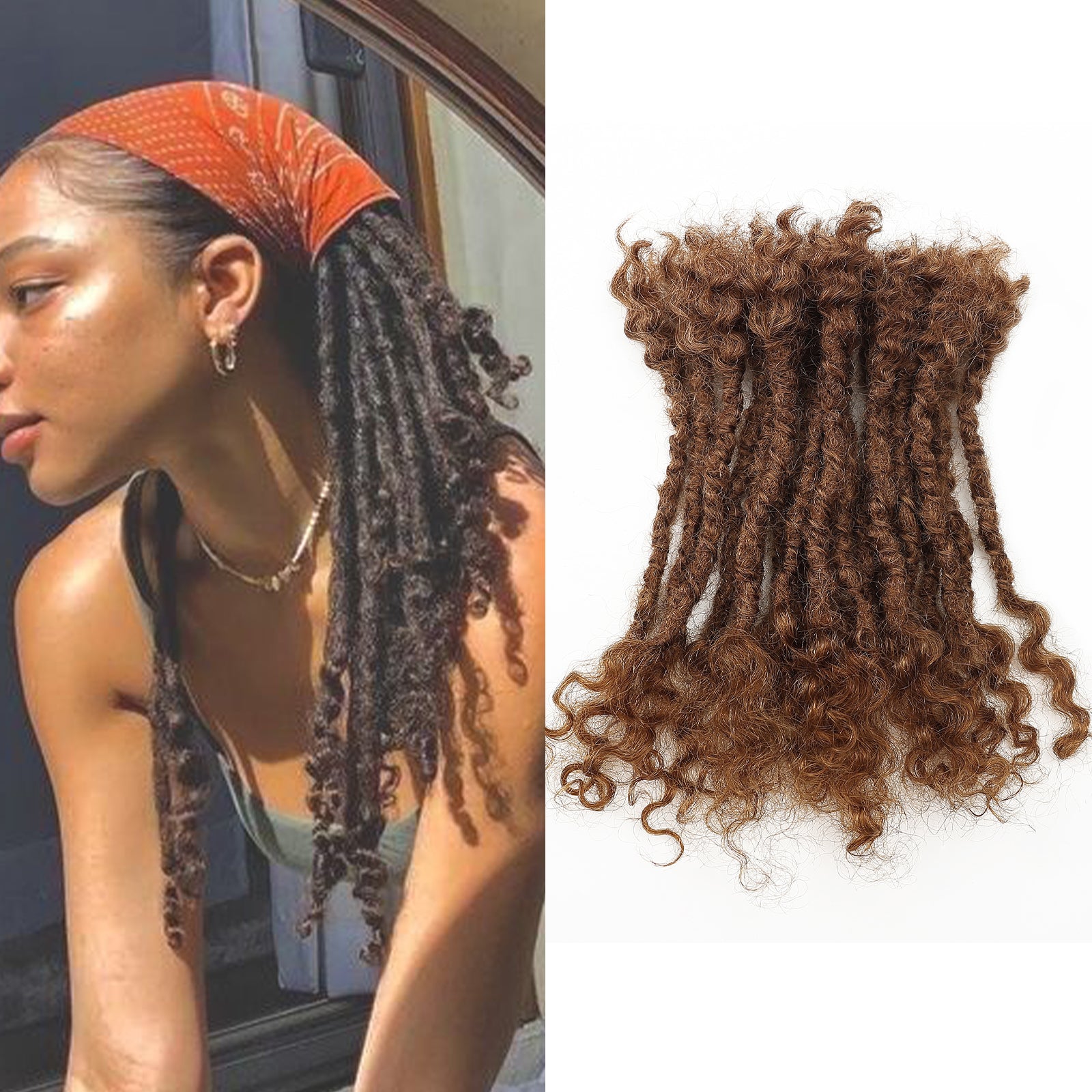 20strands/pack 0.6cm Curly End Tight Center Handmade Permanent Afro Kinky Reggae Dreadlocks Lisa Locs for Black Women